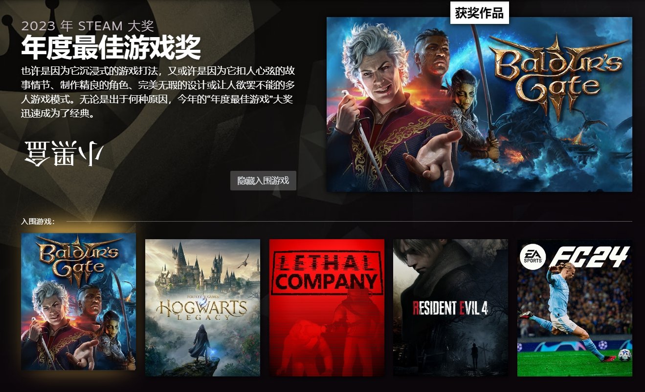 從2018年開始,Steam大獎設立了年度最佳遊戲獎項。