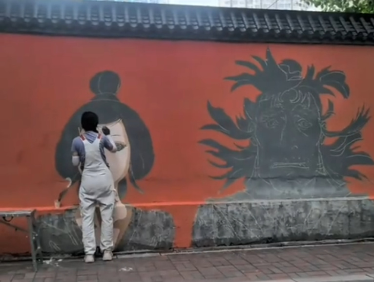 位於河北石家莊的素素,自稱“腰肌勞損女壁畫工作者”,她繪製的《黑神話》壁畫同樣贏得很多人的喜歡。