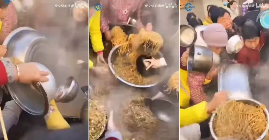 人羣爭搶炒麪,來源於B站UP主“反義詞的情歌 ”