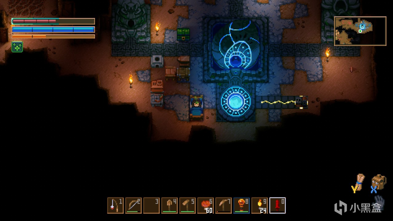 平生我自知,主角用自己的冒险旅程来诠释这句话。开局便是深陷一个黑暗、充满未知的地底世界中,周围一切都是未知且活动空间狭窄需要自己开辟,为了生存与发展,努力必不可少,不然怎么回家吧回到最初的美好呢~因此玩家需要挖掘资源、建立基地、制作装备,与各种怪物战斗,并揭开古老核心的秘密,整的就是一个从地下世界一处扩展范围,在收集材料制作与讨伐区域BOSS间反复“横跳”,整个流程有点套路,但玩家经历的可是一步步发展,从木材到金属再到磁电等资源利用,时代在进步,玩家在地底世界也能发展科技,创造一切不可能,本作便提供了这一平台,只要肯肝,什么都能安排!