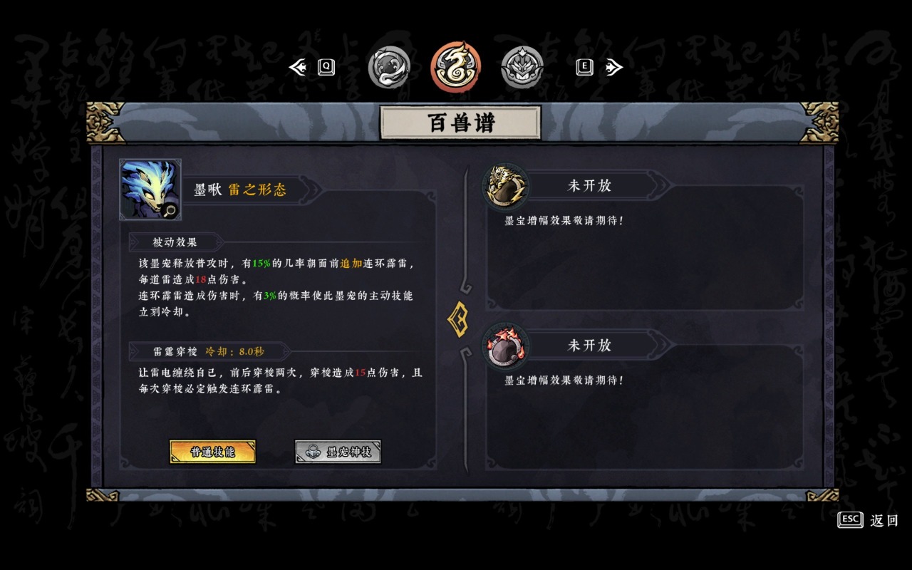此外,還有我覺得算是《墨境》最獨一無二的「墨寵」系統——「墨啾」。作爲你戰鬥路上的小夥伴、好榜首,只要構築得當,墨寵的輸出也是相當可觀。不過現階段墨寶和墨寵之間的聯動還有待加強,只有當玩家攜帶不同的墨寶時會導致墨啾形態發生變化,至於墨寶對墨寵的增幅則需要等後續版本實裝。