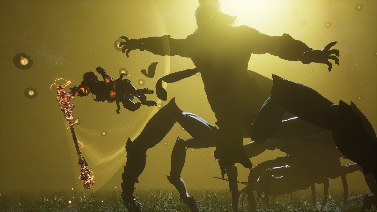 战斗体验的巅峰是在拿到禁字决和小三太子的枪之后。枪的动作模组用起来实在是太丝滑了,尤其是戳棍。棍的退寸是小碎步往后退,枪的退寸是大后跳,而且还能随时退寸。枪的第一下轻击追击范围感觉也比棍远,加上进尺打起来就感觉一直在进进退退,七进七出赵子龙附身。一套连击的什么时候停下来,取决于你的体力条长度,boss完全碰不到你。