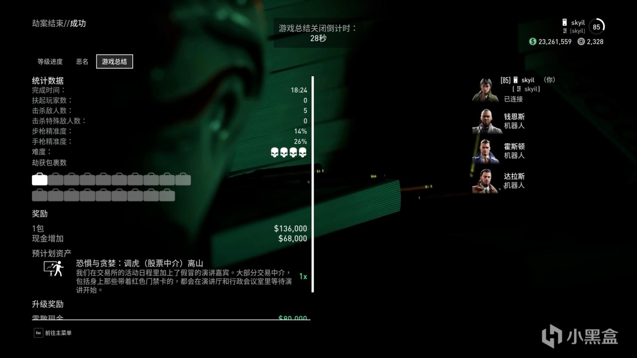 它那颇受诟病的进度机制也得到了更改,不再强求玩家去达成各种苛刻的条件,也无需再重复游玩劫案数百次;昔日繁多复杂的挑战,如今却被简化为首页中的3个简单任务,只要刻意做任务便能轻松得到1200EXP与90C堆栈币,这放之前可是难以想象的情况。但这倒也带来不小的弊端,之前会同朋友一起研究潜行路线、以达成不杀一人枪林弹雨难度潜行的挑战,一起研究速通的邪道玩法,但现在却总有股拔剑四顾心茫然的感觉,已经沦为无情的通关机器了。