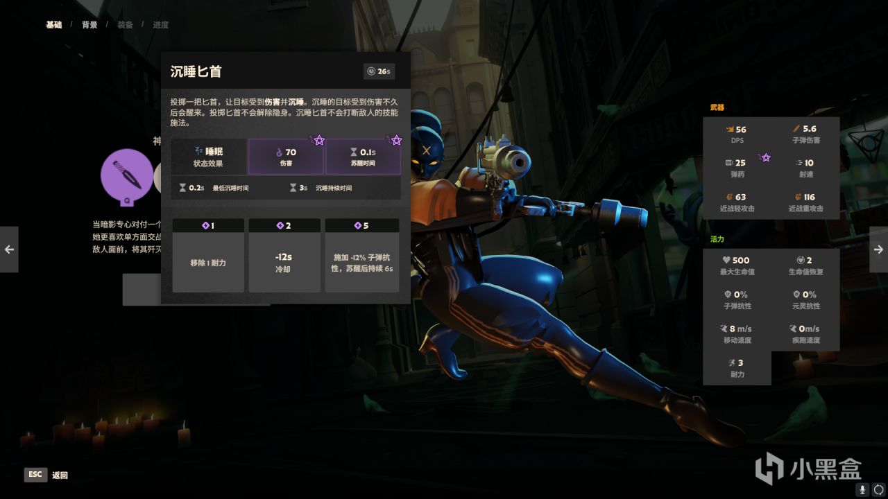 丟出去一個匕首,將命中的敵人進入一段時間的睡眠狀態不會打斷施放技能,且敵人受到攻擊會提前醒來