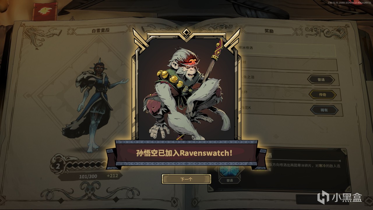 此外,在角色流派的构筑上,《鸦卫奇旅》制作组也有着独特的想法。我们都知道,一个肉鸽游戏好不好玩,角色流派的构筑(即BUILD)吸引人与否占据了很大一部分要素。而在《鸦卫奇旅》中,玩家可以选择的不再是能够“完全”自由选择战斗方式的万用主角,而是拥有不同特质和战技的童话主角,比如能够在白昼与黑夜间切换人与狼形态的小红帽(这让我想起了《童话镇》里那一句:小红帽有一件抑制自己,变成狼的大红袍),能够使用笛子发出音波作为武器还能驭使老鼠作战的花衣魔笛手,有能够自由操控寒冰能量的“白雪皇后”(这个有点正确),甚至还有我们的孙悟空,好家伙,这下真的是《黑童话:悟空》了。