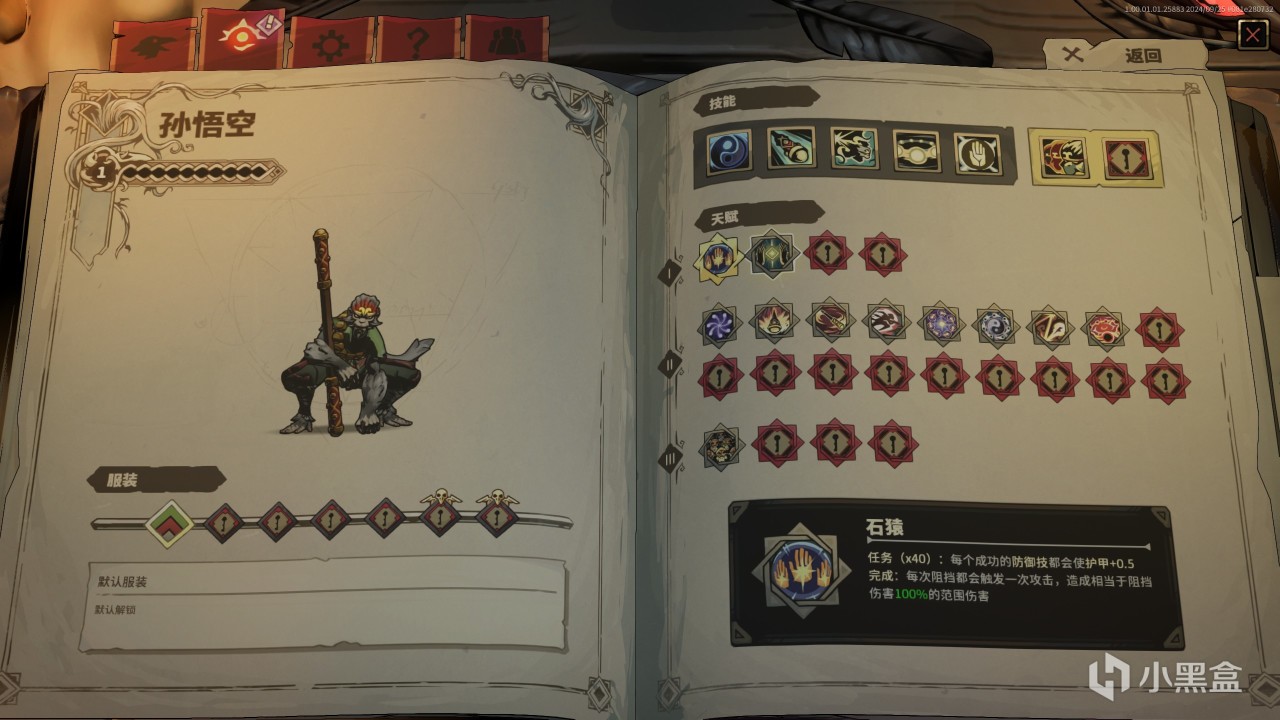 不过值得一提的事,在《鸦卫奇旅》中的孙悟空应该是这些游戏中上限最高的了,其原因就在于它的化劲掌:阻挡一切攻击在0.5秒内,每次成功阻挡攻击,阻挡时间就会重置冷却时间(5秒),搭配上天赋石猿:每次成功防御都会永久提高护甲0.5,完成40次后解锁特殊能力:每次阻挡成功都会造成一次范围伤害,造成阻挡伤害100%的范围伤害。。。可以看出,孙悟空的理论上限可以说是最高那一档,只要你反应够快,你甚至不需要其他任何技能,光是无限的阻挡就能0消耗清理掉所有敌人!