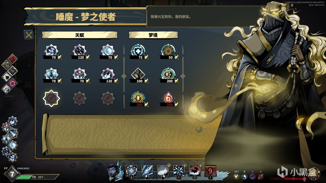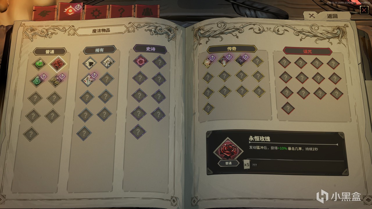 你可以看到,选定角色进入游戏后技能都是既定的,允许玩家构筑的内容是每一项技能所对应的强化,比如说你可以强化攻击技,让其每次攻击的时候有25%的概率可以横扫周围敌人并造成120%的伤害,然后配合魔法物品使攻击技造成的伤害提高20%,玩家可以选择的是强化哪一项技能,而技能所可以强化的方向并没有更多的选择,即玩家需要在有限的等级(不出意外地话第一章能够到达5级)和有限的资源(运气好的话第一章可以通过魔法书+任务奖励+许愿井获得近十次的强化)内选定一个战技作为主要的输出能力,但是这个战技不管你玩几轮,它的强化方向都是固定的(因为角色本身的技能就是固定的),因此,相对于传统的肉鸽游戏来说,这点有些不那么肉鸽。需要注意的是,强化的技能是可以提升品阶来增强输出的,比如前面提到的强化技能,升阶之后可以在横扫时造成130%的伤害等等。