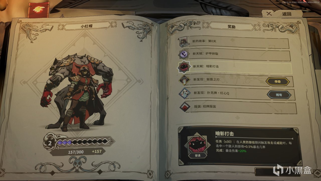 当然,这不仅是打比方,也是字面意思上的,《鸦卫奇旅》的游戏界面就是一本精致的童话书,当你点击之后伴随着书页快速翻动的声音,会迅速地翻开然后选择一个童话中的任务,接着带你走进那个“黑童话”的世界。虽然UI这一块跟游戏性并无多大关联,但可以肯定的是,拥有更养眼的UI毫无疑问能够让玩家获得更加舒适的体验。