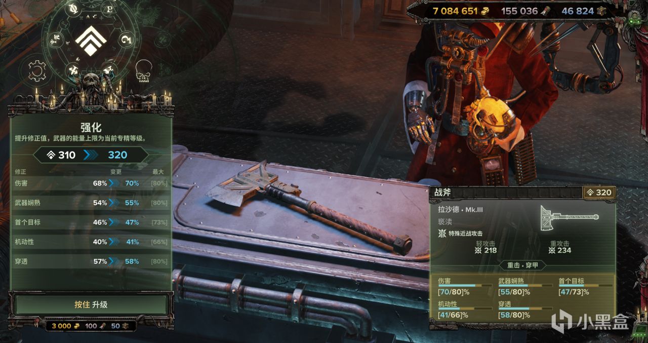 新版本所有武器五圍都可以達到500(即更新前的380),專長、祝福的更換不受限制(以前是4選2)。因此,新版本討論武器畢業與否,看臉的部分只需要考慮武器的五圍上限,不再需要賭專長和祝福了。下圖爲當前裝等320的拉斧,需要花費金幣塑鋼金剛砂升級到500。