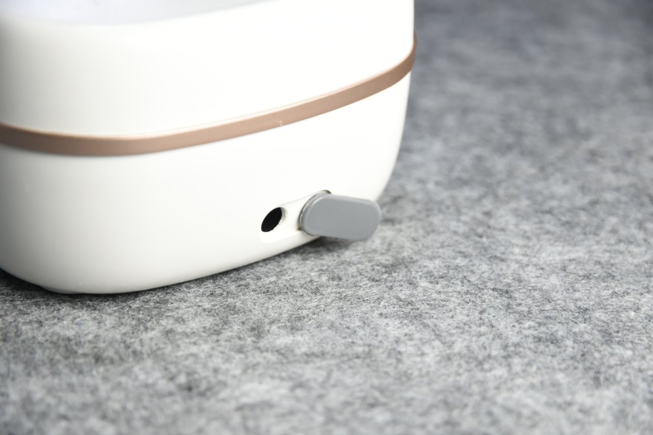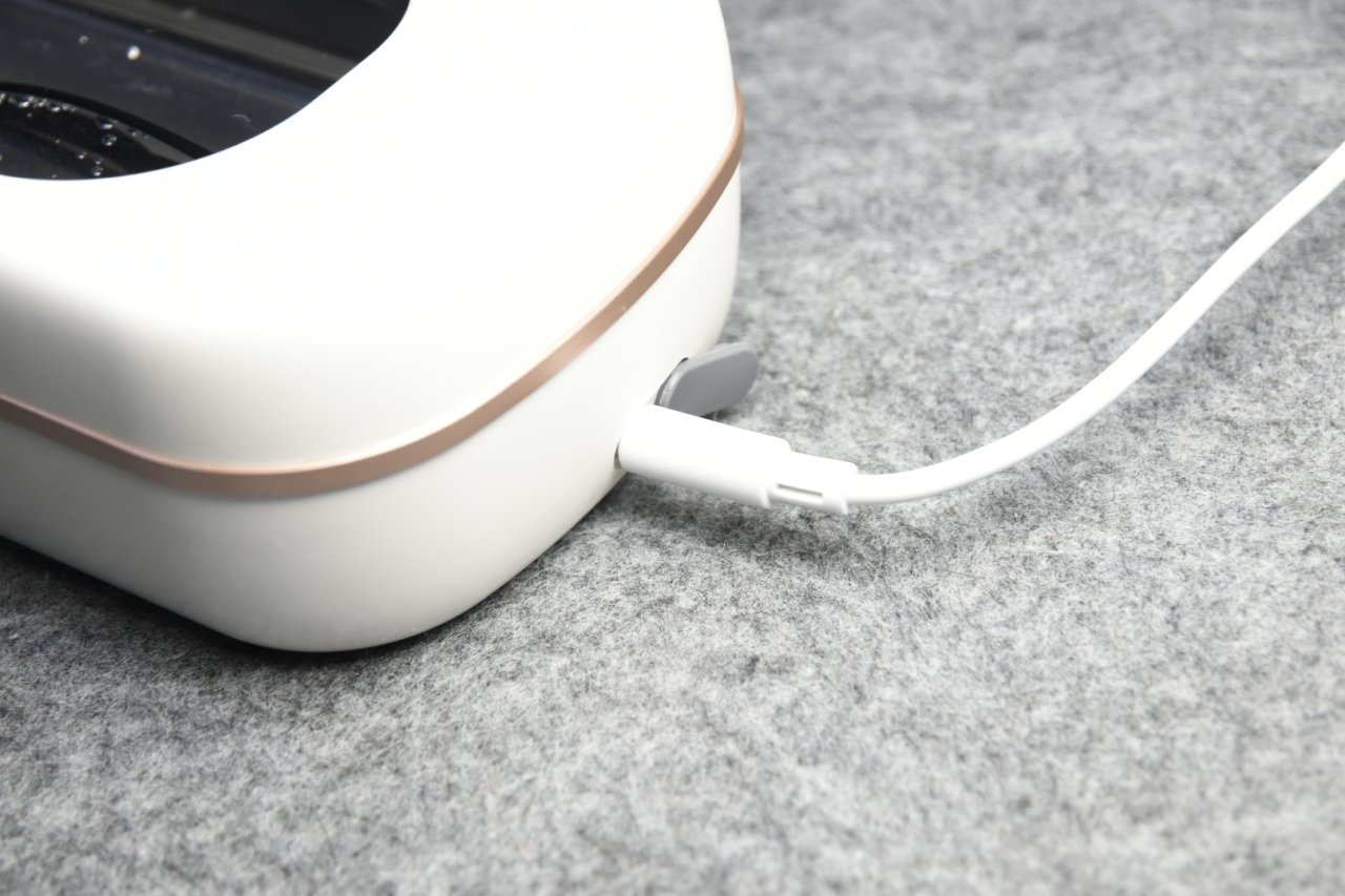 這款超聲波清洗機的外觀雖然比較簡約,但十分耐看,中間的一條玫瑰金環爲它平添了幾分質感。