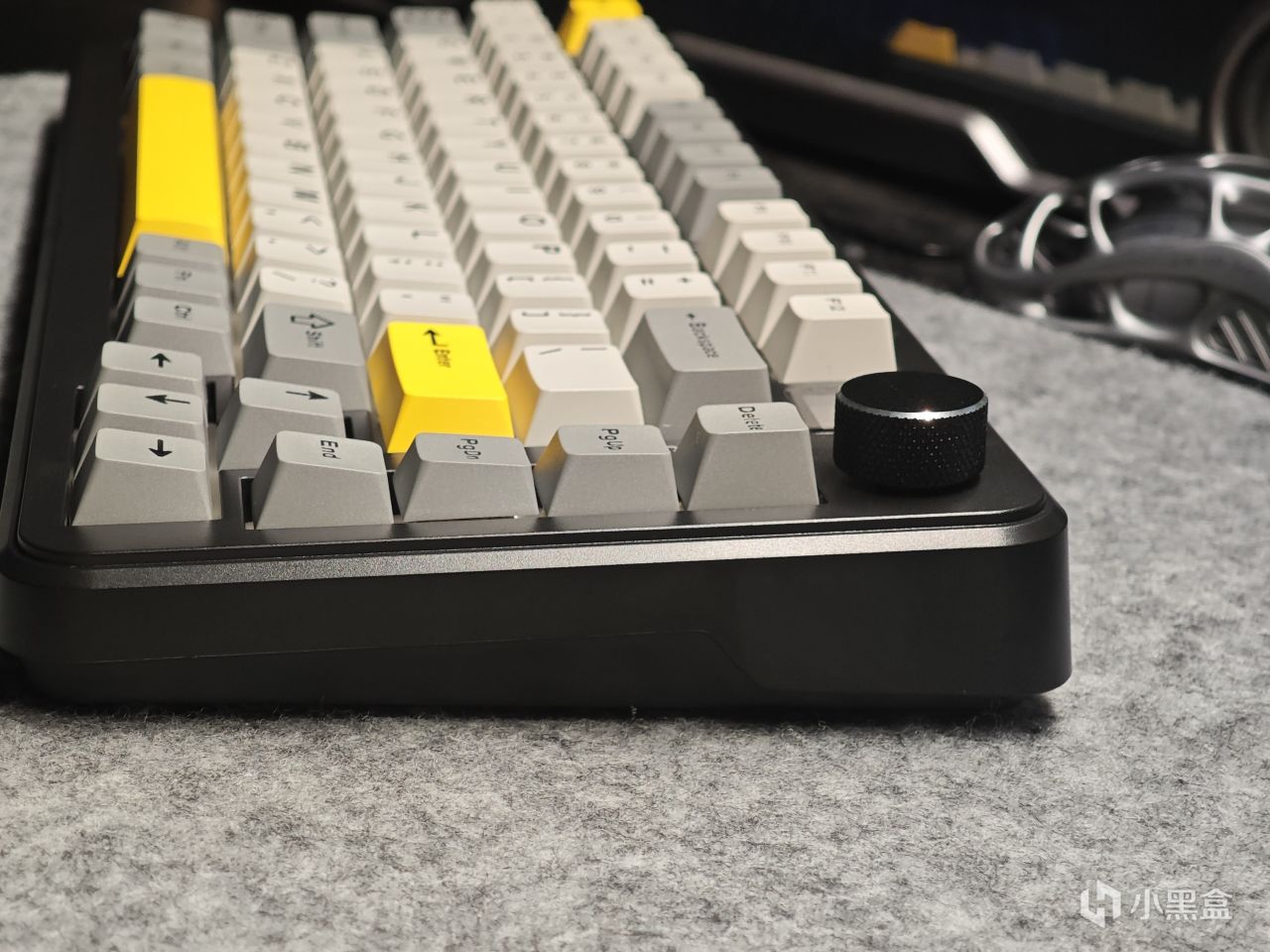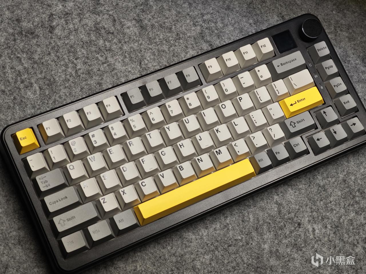 本次測評的是三模-星晚灰-帶TFT彩屏款,鍵盤的尺寸爲333x143x20.5mm,75配列,總共82鍵加一個多媒體旋鈕,重量爲920g,中等稍微重一點。