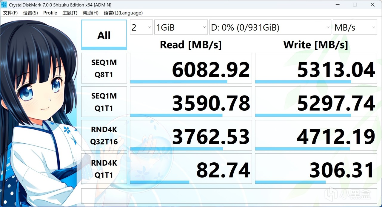 Crystal 1GB和64GB測試,可以看到大量數據測試下性能幾乎無衰減,讀取在6GB/s出頭,寫入在5.3GB左右,非常強!