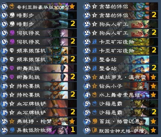 起手留牌:突襲必留,能打2的隨從都要留,線縷要留,後手可留礦工樓主或馬林