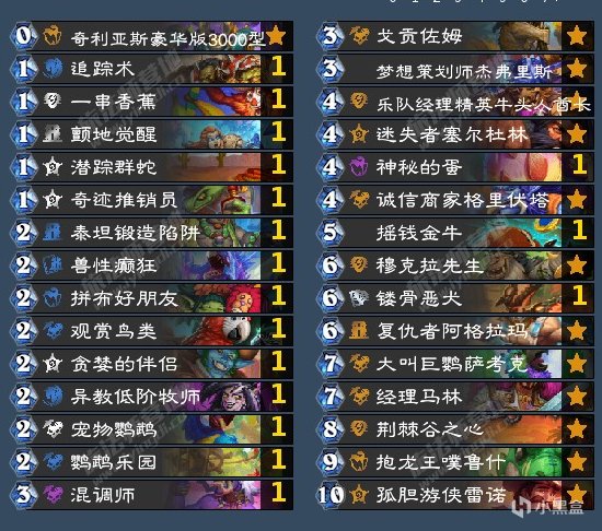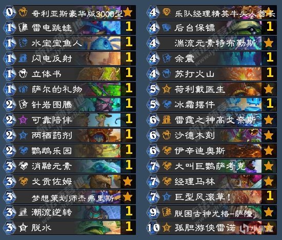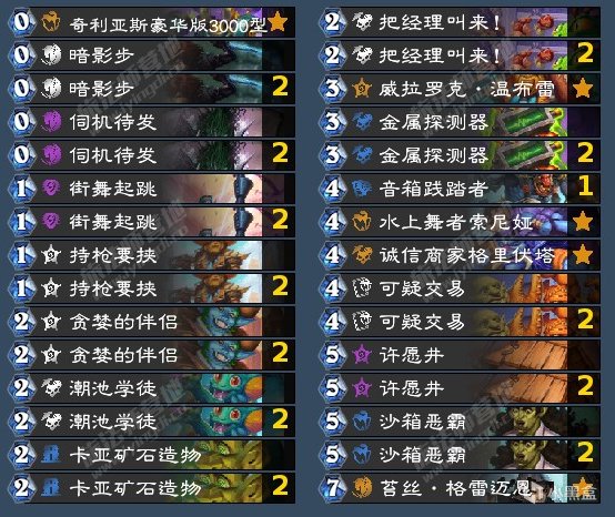 這套卡組我遇到的也蠻多,起手留牌最好是優質低費隨從1兩張,後面配釦子炫目這些都行