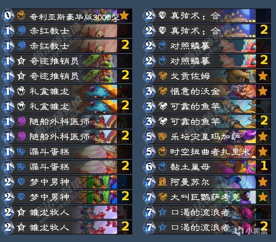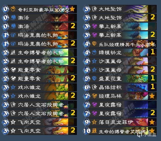 這套卡組主要提高瘋狂拍龍達成時空扭曲的條件,最後通過小黃龍疊出來的高費隨從加其他隨從配合額外一回合把你打死
