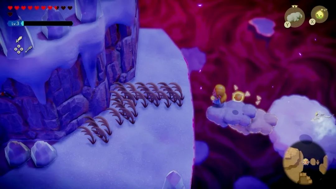 另外一個原因嘛,那就是塞爾達的性能有點太強了。提升跳躍高度的飾品、多重牀板、克服重力的攀牆蜘蛛,跳躍性質的關卡基本上沒有難度。這導致無之世界的箱庭體驗重複度過高,玩起來沒什麼新意。獲得複製品-雲以後,類似關卡就更無聊了,基本上就是不斷地重疊上升。