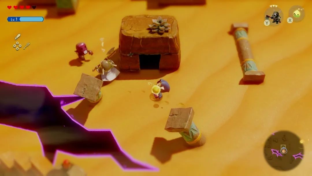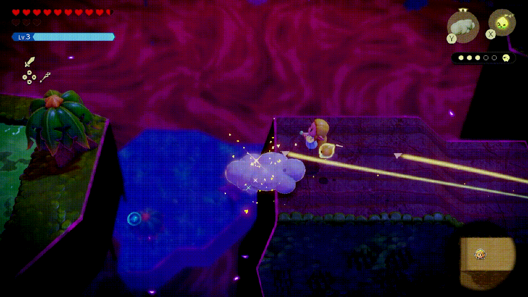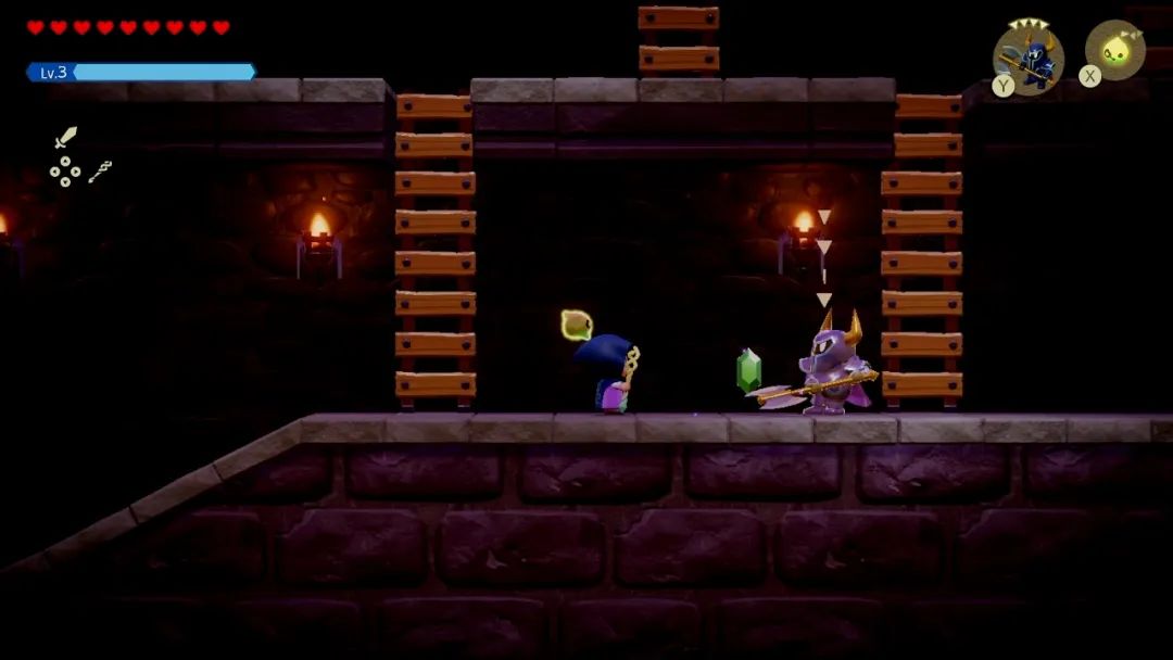至於2D的卷軸房間,本身沒有特別出彩的地方。召喚物是唯一的核心設計要素,設計上顯得比較保守。新人上手,特別是體驗過《曠野之息》與《王國之淚》的玩家,一點問題都沒有,甚至能感受到熟悉的味道。但想要重溫老版2D塞爾達的體驗的話,本作可能滿足不了你的要求。
