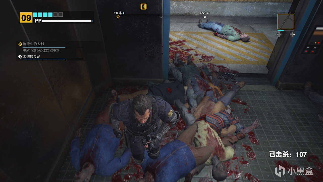 更多情況下,喪屍僅僅是阻礙你前行的絆腳石,在你跑路的時候時不時會冒出一頭喪屍朝你撲來,導致會浪費你一點趕路時間。畢竟喪屍的重生頻率幾乎零CD,從另一個區域進去,黑屏加載後再返回去,喪屍就立馬打贏復活賽並繼續往你脖子上留脣印。以至於保安室的上下電梯,你一打開門總有上百喪屍擠滿電梯空間,在恭候着你光臨。