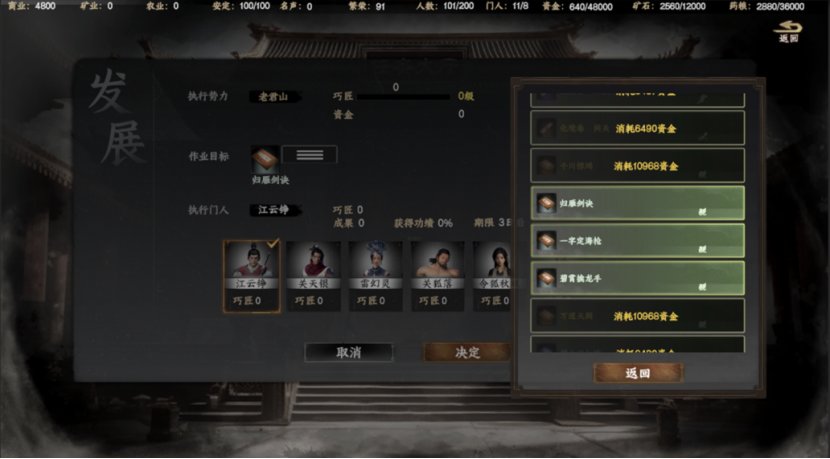 (類似騎砍和莊園領主玩法,門派模擬經營開啓)