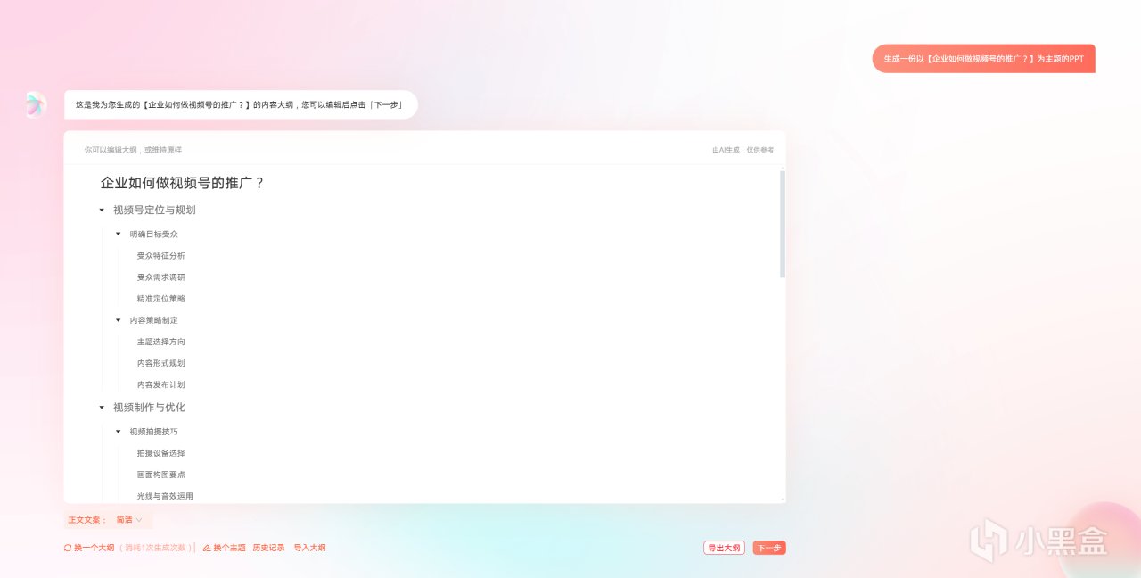 以前做PPT各種網上找模板,要麼收費下載,要麼很難看,修改起來也很麻煩,現在AI PPT直接文字生成,導入大綱,操作起來實在太方便,大大的減少了工作量!!!!