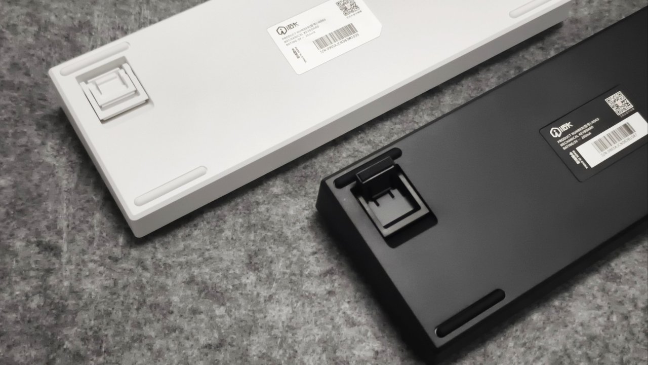 鍵盤的底部就是二段式腳撐和4個硅膠腳墊,腳撐比較緊實,所以你日常移動鍵啥時候也不會擔心他突然縮回去,導致一邊長一邊短的問題。比較可惜的就是他沒有像NA87PRO樣採用的蜂巢設計