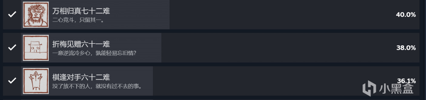 《黑神话》Steam全球成就页面,“万相归真七十二难”的解锁率已经达到了40%,说明很多玩家都已经通关这部相对新人来说有难度的动作游戏了