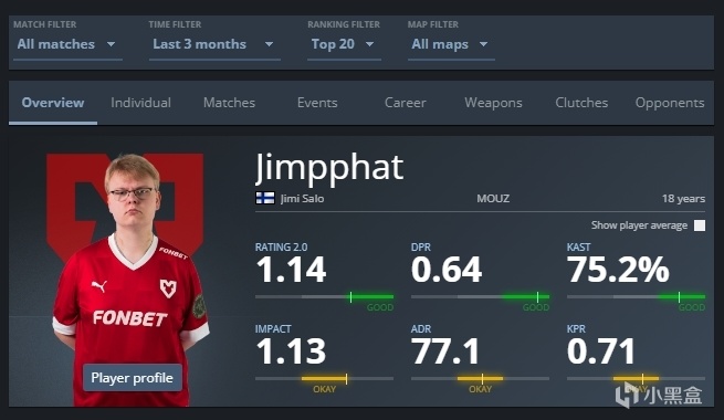 jimpphat近三个月对阵TOP20战队数据