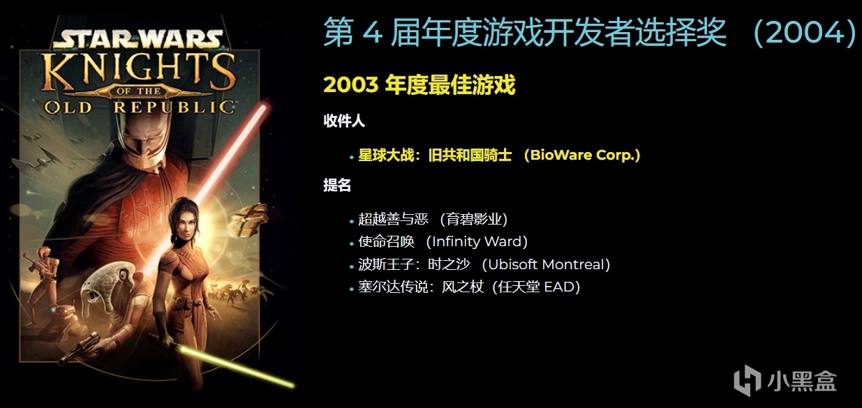 2003年度最佳遊戲《星球大戰:舊共和國武士》