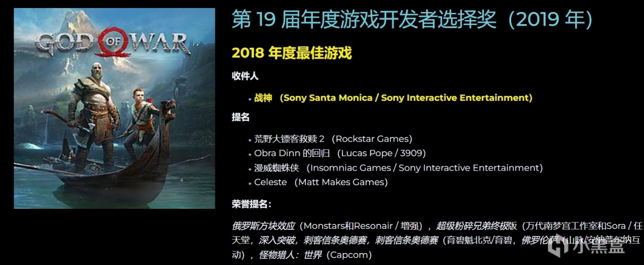遊戲發售後獲得了TGA2018年度最佳遊戲、IGN 2018年度最佳遊戲、D.I.C.E年度最佳遊戲等多個遊戲獎項提名。