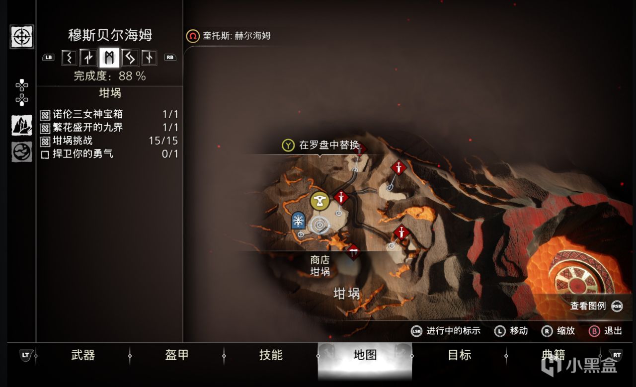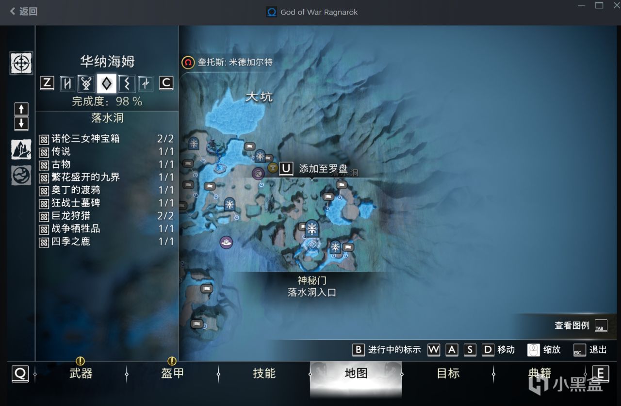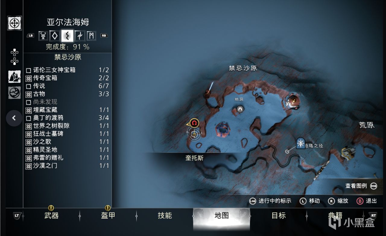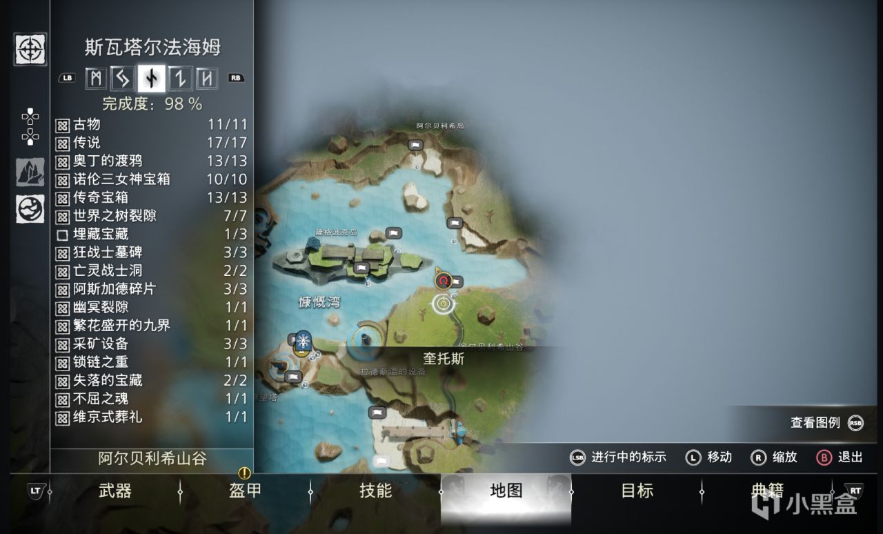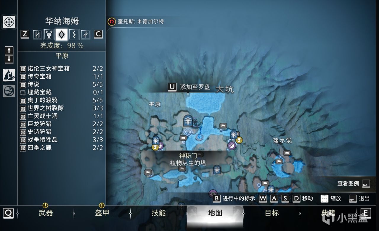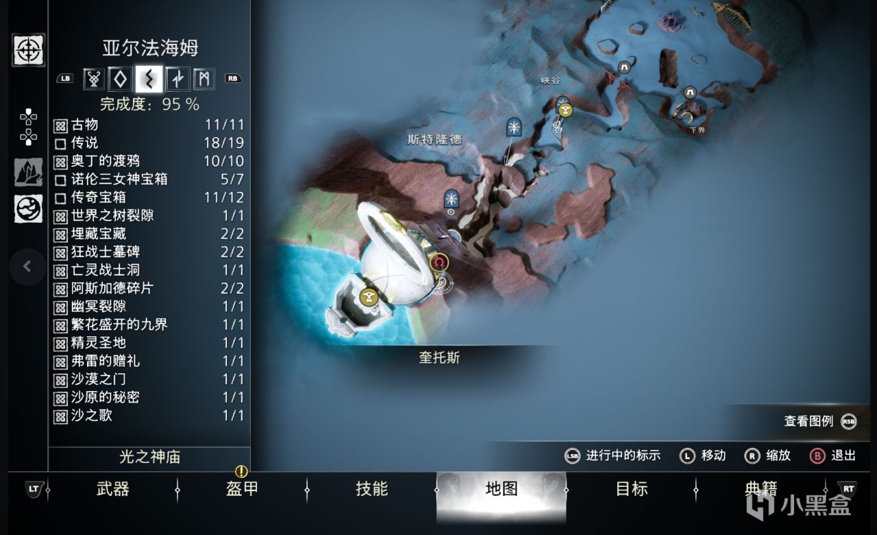 首先聲明:標在地圖上的普通的需要收集的東西爲:30個諾倫女神寶箱、全渡鴉、全古物、14個劍柄即可,傳說,傳說寶箱不需要全收集。