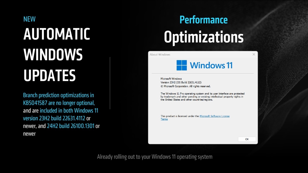 同时,AMD联合微软发布了KB5041587系统补丁,可以优化Zen架构的分支预测,显著提升性能。