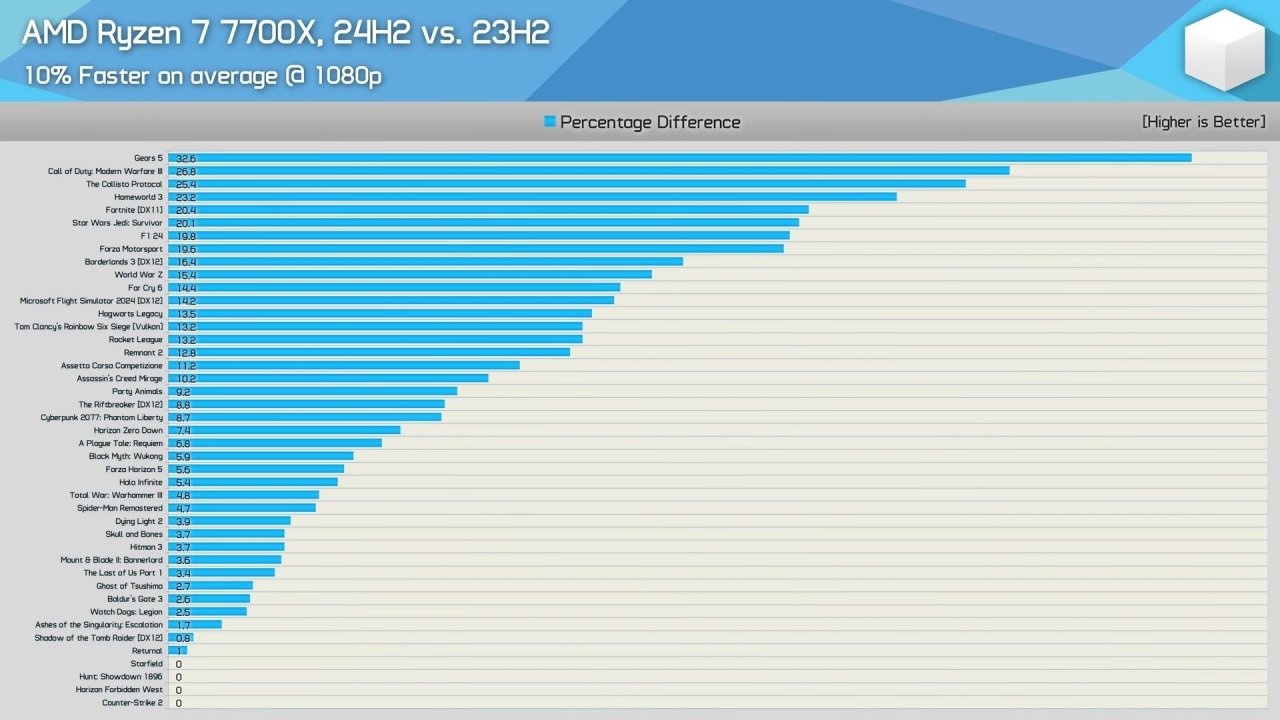 同时,锐龙7 7700X可平均提升10%,其中《战争机器5》高达32.6%。