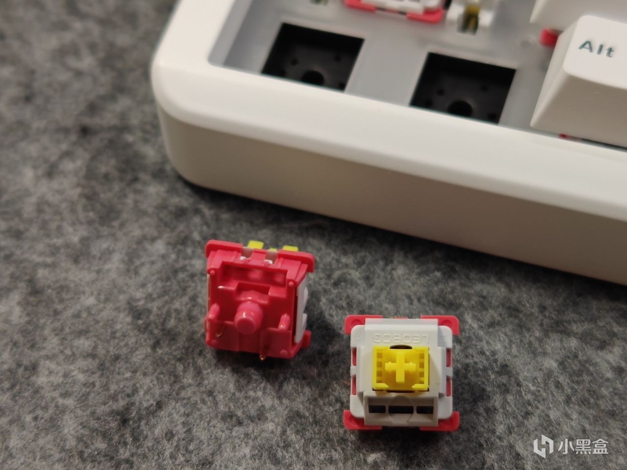 Hi86軸體有兩種,一種爲自家高配版靈動軸V3,搭配8000mAh大電池。另外一種爲星矢軸,算低配,只有黑色可選,並且電池爲常規的4000mAh。靈動軸V3,初始壓力爲28g,觸底壓力45g,觸發行程1.3mm,觸底行程3.mm,觸發較爲靈敏,順滑度還行。觸發聲音方面,聽感舒適,沒什麼雜音。定位板做工很不錯,沒有毛邊毛刺做工瑕疵。