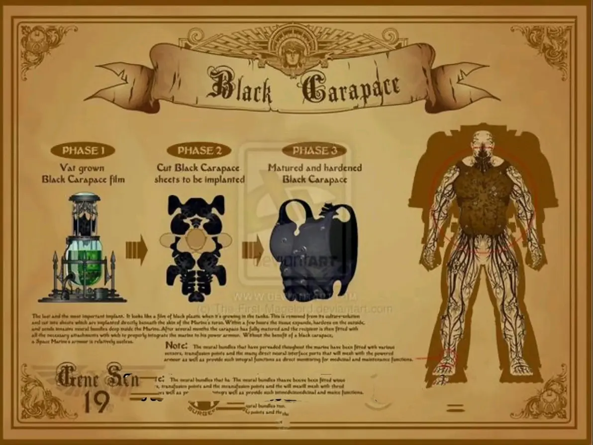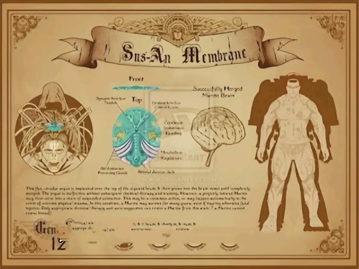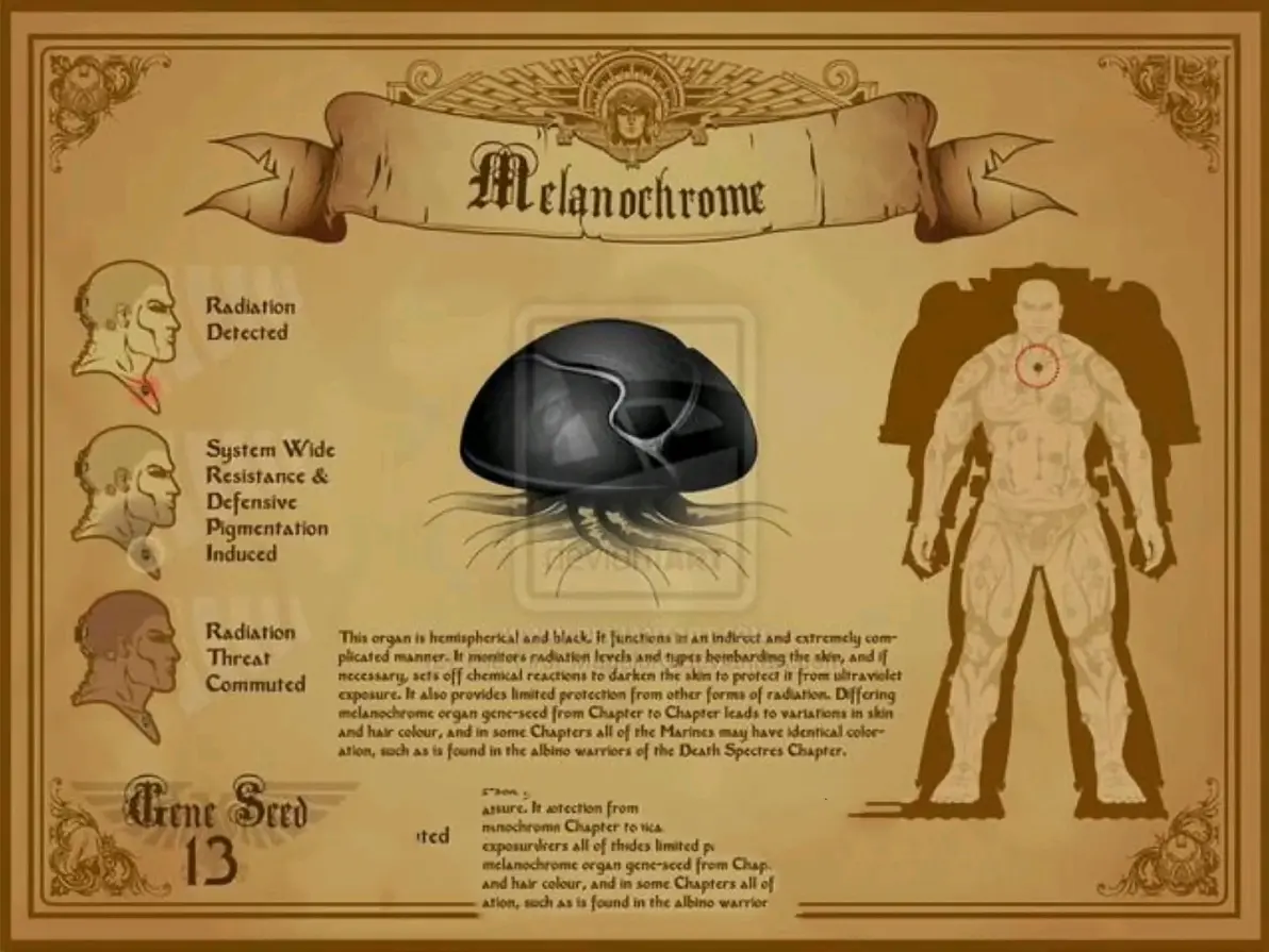 基因種子植入是手術的第0步,這些蘊含了基因原體力量的遺傳器官會被植入到新兵的喉結和胸腔位置,並大幅增強其體魄以便防止接下來的手術排異。