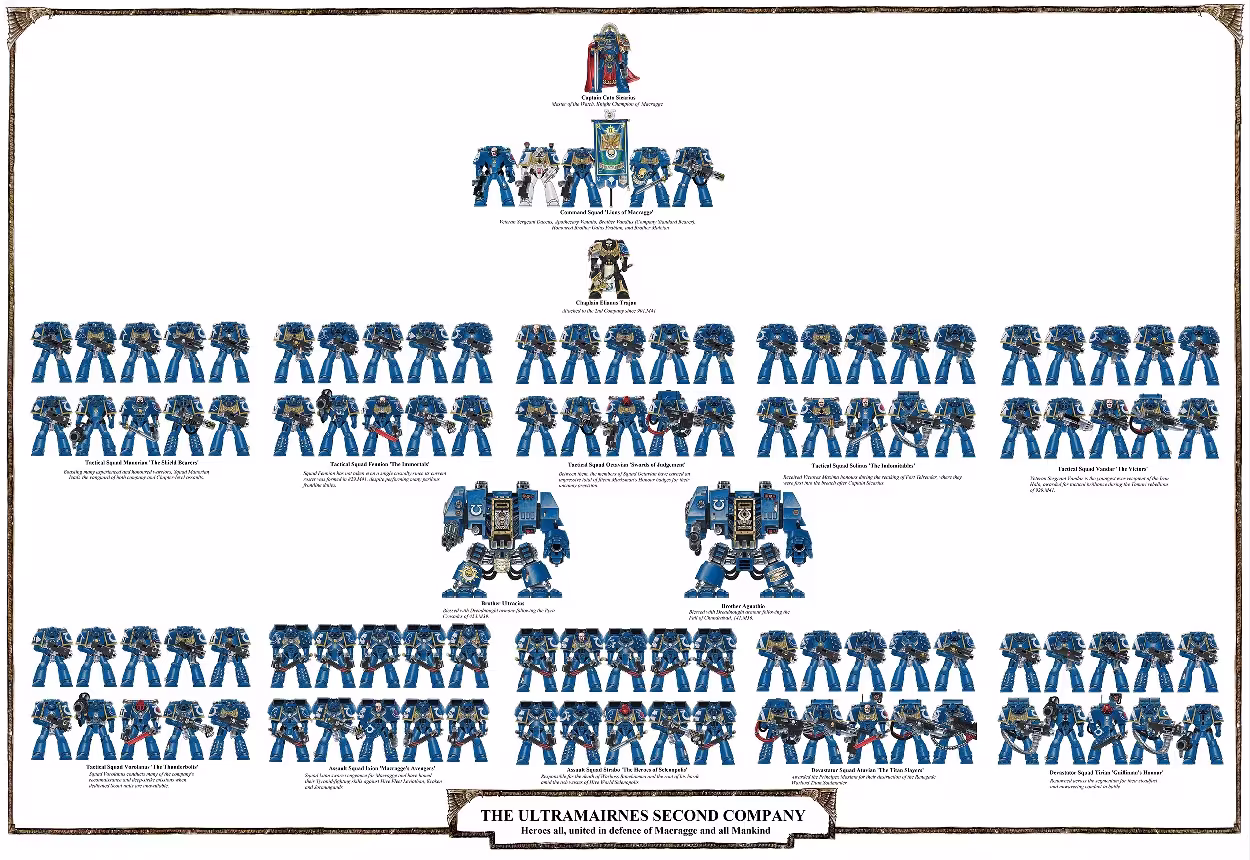 第一連:白色或金色,這一連由老兵和終結者組成,戰鬥力兇悍,配備了神聖無畏。