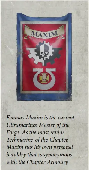 從下圖的標誌就可以看出來,技術軍士是戰團中負責修理維護軍事裝備,祈福機魂的特殊職業,這些阿斯塔特在工程和機械學上表現出衆,因此會被外派到火星機械神教留學並在那裏信仰歐姆彌賽亞,在回到戰團後,他們會領導戰團內部的機械神教人士修理補充戰團那些損壞的裝備甚至是無畏機甲。