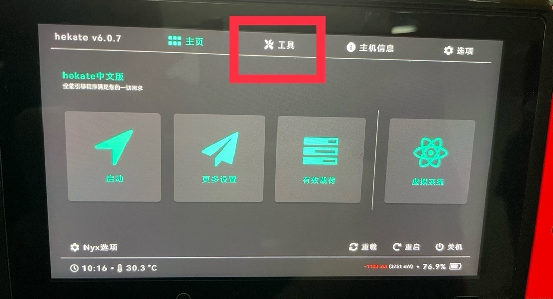 將你的Switch開機,在系統停留在大氣層主界面時,點擊上方第一行第二項“工具”