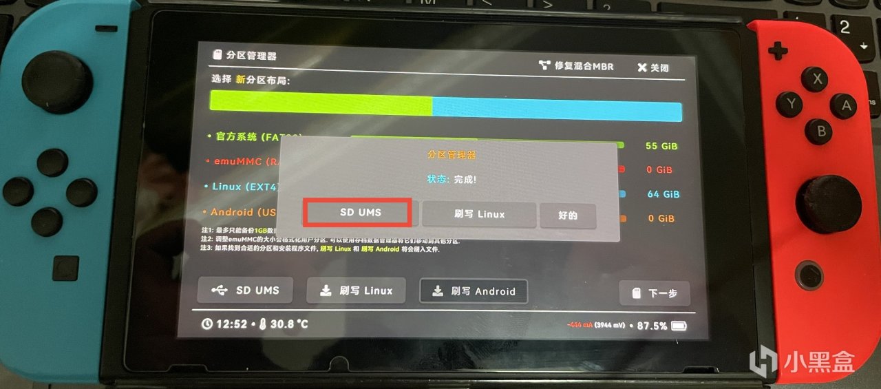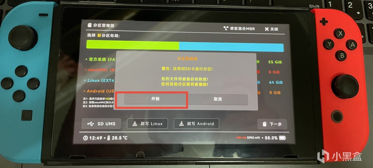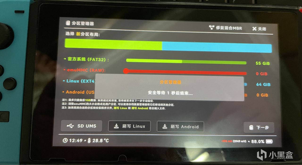 首先會進入五秒安全模式。之後再按一下Switch電源鍵進行確認,然後系統會自動進行分區