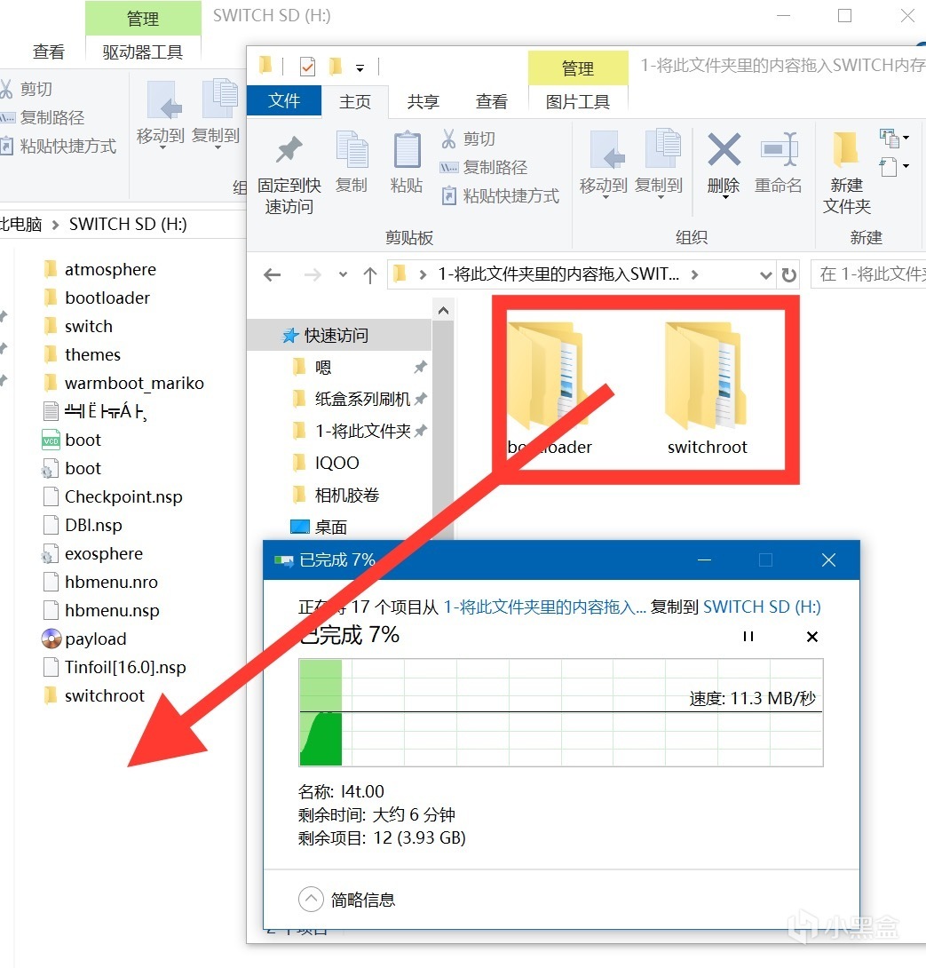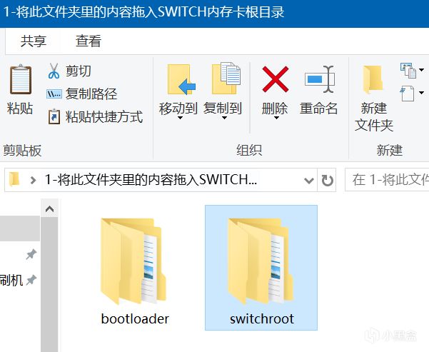 將系統包的文件夾“1-將次文件夾裏的內容拖入SWITCH內存卡的根目錄”就像下圖這樣