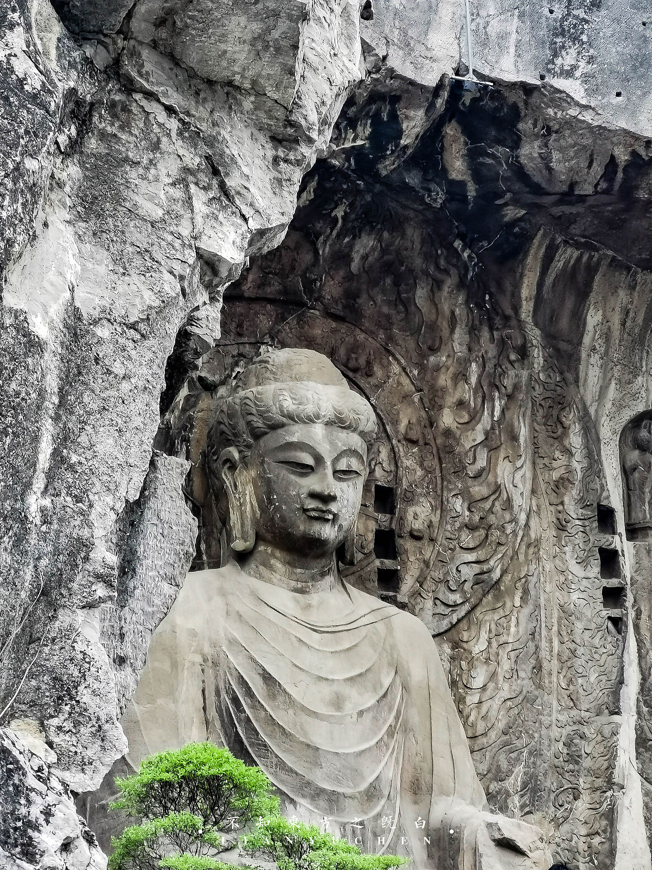 龙门石窟卢舍那大佛,按照武则天形象塑造,是龙门石窟中艺术水平最高、整体设计最严密、规模最大的一座造像,以神秘微笑著称,被国外游客誉为“东方蒙娜丽莎”“世界最美雕像”