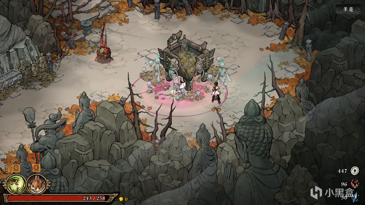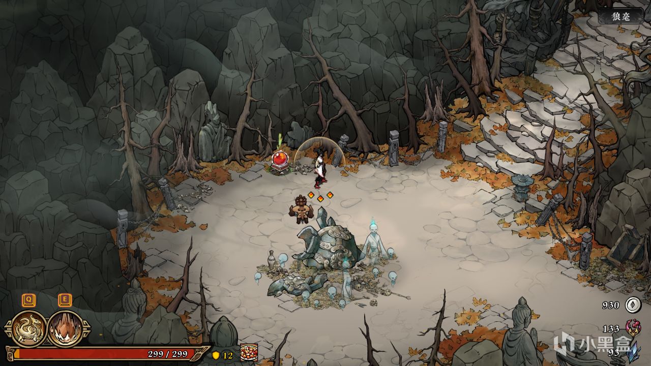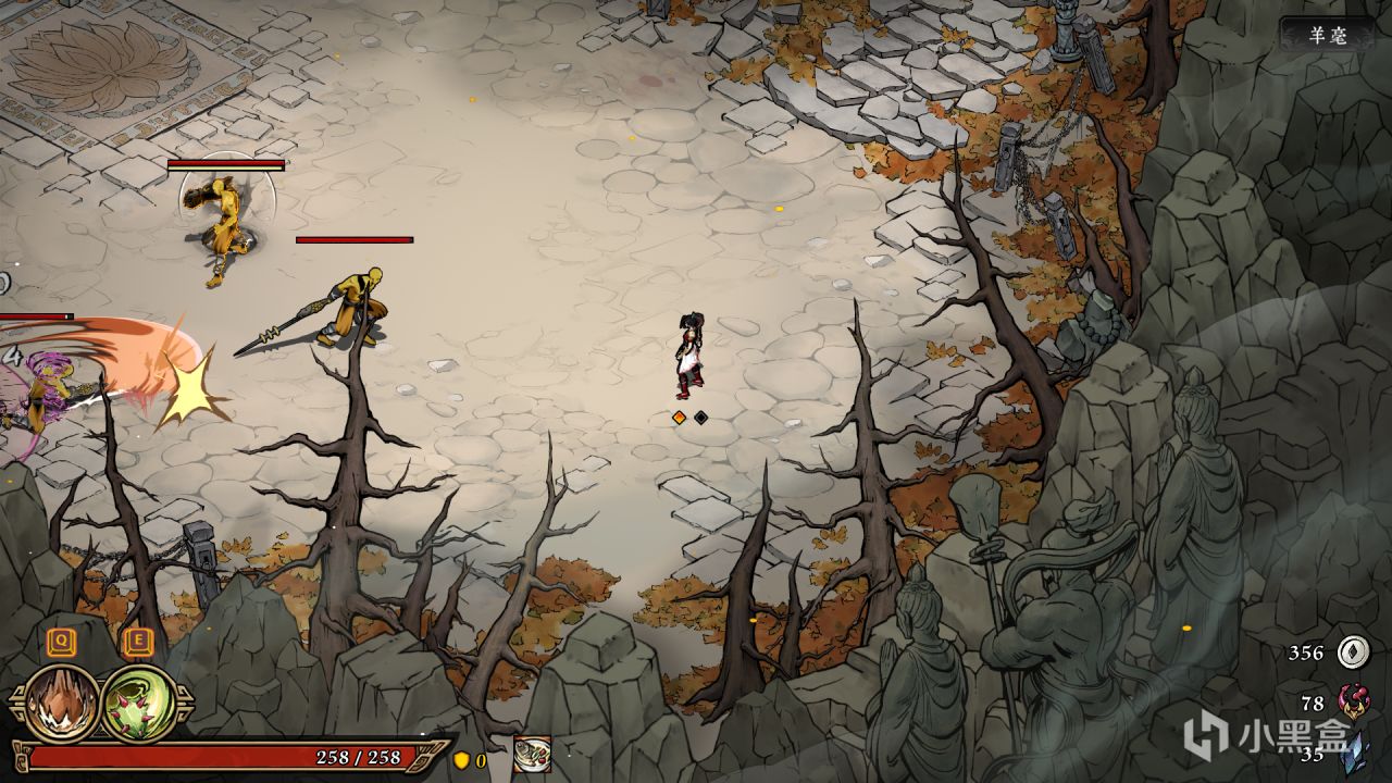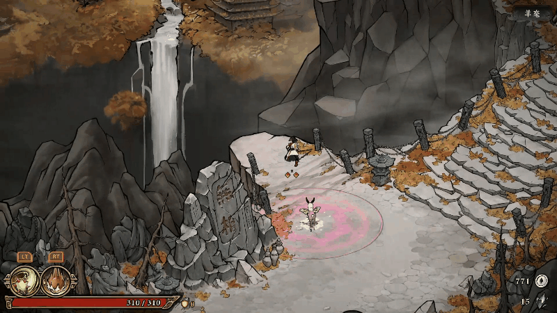 這款遊戲的畫風我是真的喜歡,國風水墨畫,帶色彩2.5d版,主要有5個地圖,雪洞,無相山,幽厄林、墨神冢,書靈,除了書靈每個場景都有精英怪和首領,總共九個boss(最後BOSS爲)