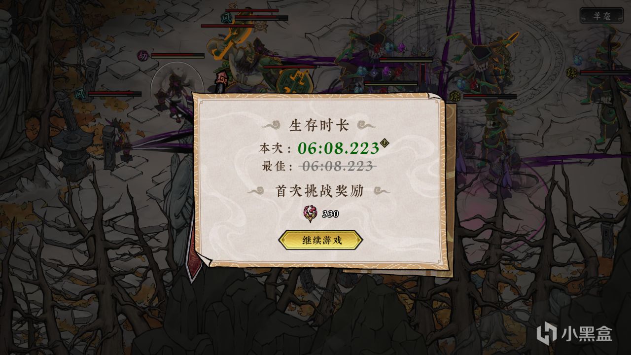 打完之後可以進入大千空境,生存挑戰,獲得越久,血墨越多。
