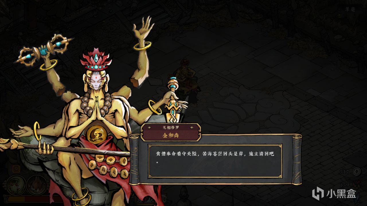 無相山:無相無無相,方是真相,有相有有相,便是假相。俗話說佛本慈悲,但是無相山裏面滿滿的場景都訴說着喫人與腐敗,還有所謂的僧侶會攻擊你。依舊和雪洞一樣部分物品可以擊碎。