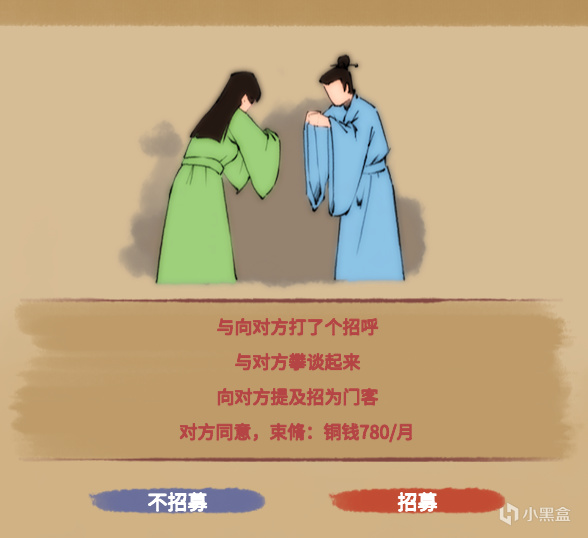 2,遊戲內容豐富自由,例如可以招了門客之後派他們打工;有時路上會遇到煉丹的老人,買下丹藥就能加特定的屬性點;藝術點不足時去賣藝會被NPC羞辱;可以挑撥各世家關係,藉此上位等等,這些都是出現在遊戲裏的內容,只不過因爲篇幅原因我就沒展示了,盒友們可以自行探索哦