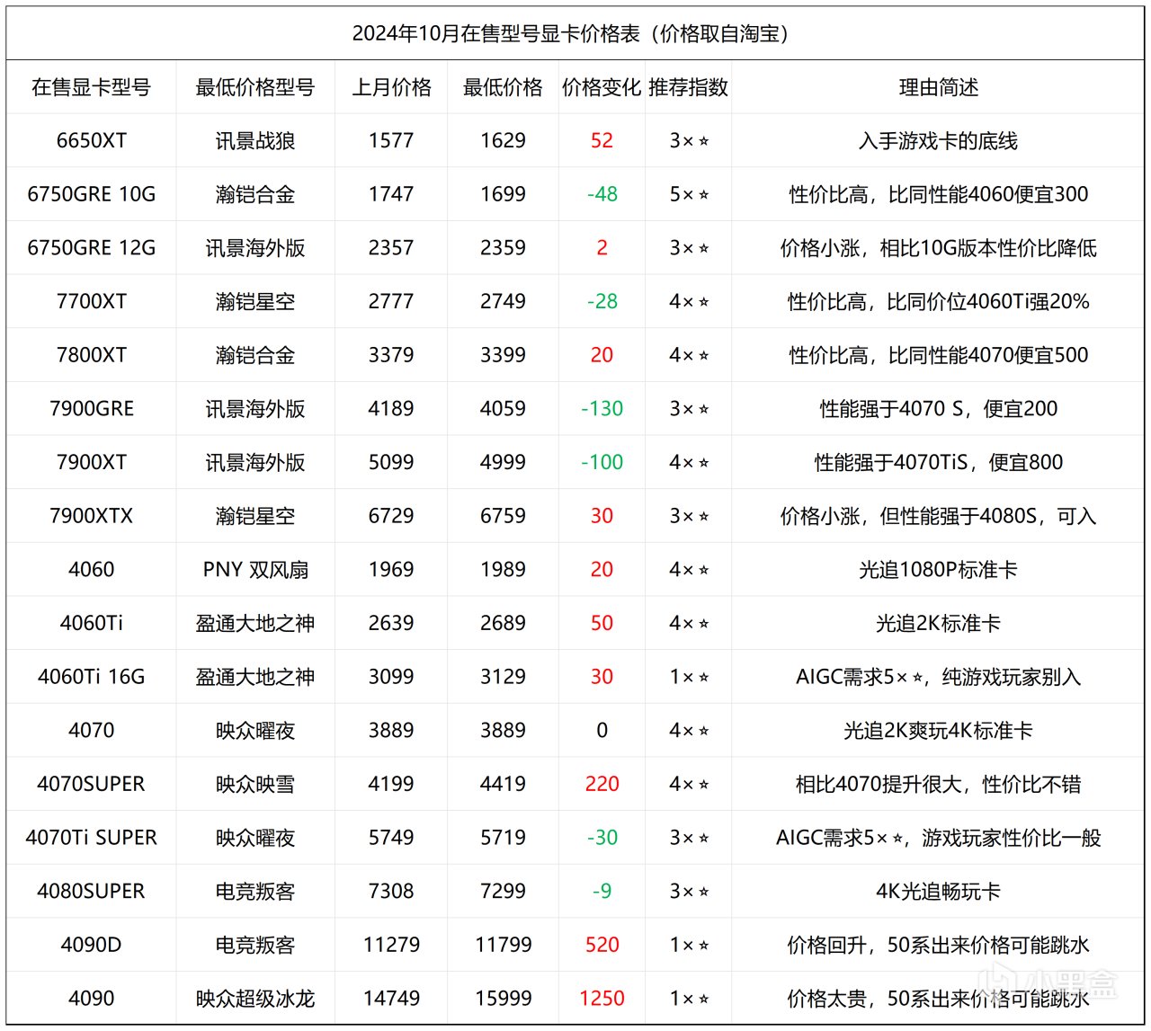 本月显卡价格基本稳定,4070S涨的比较多,据说是因为NV跳票4070S芯片供应所致,其他型号整体没有太大变化,这一代显卡新品发布延迟到了明年,甜品级发布估计要等到明年中旬了,80、90级别的用户建议等一等,其他用户就可以不用等了,等至少要半年起,估计也不会便宜多少。
