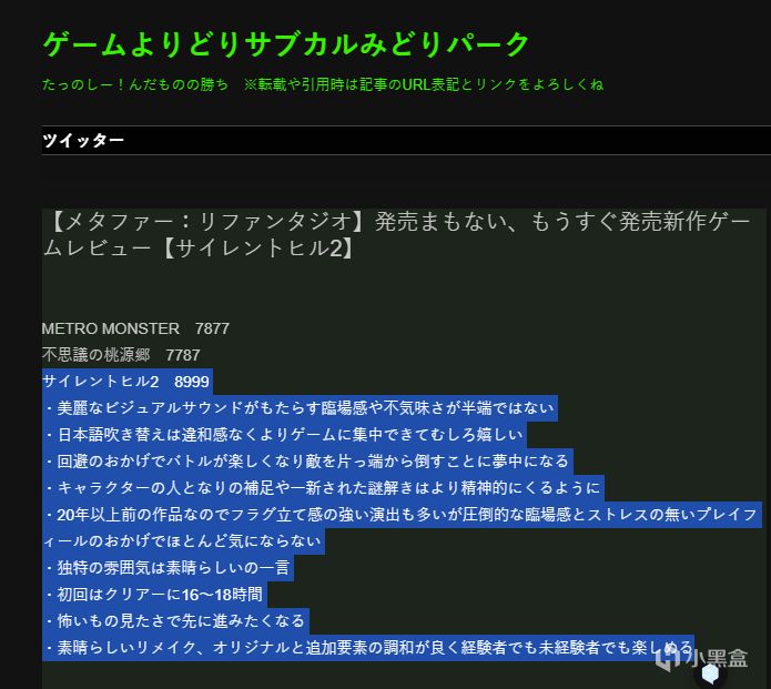 日本雜誌Fami通本週刊載了《寂靜嶺 2 重製版》的評測,評測人員 ryokutya837 隨後在個人網站發佈了這款遊戲的前瞻評測,預告即將發佈的正式評測。