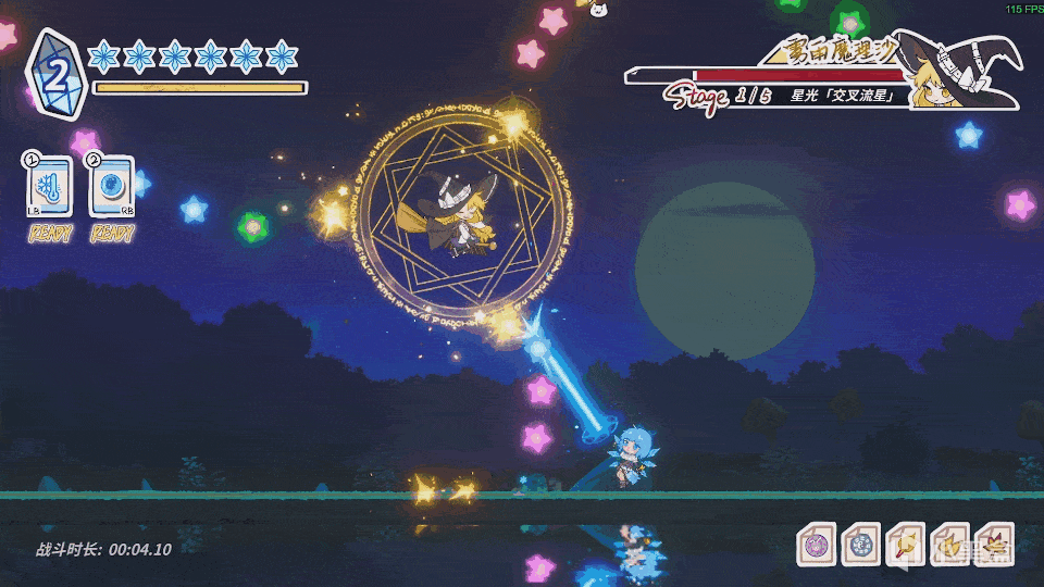 比如遊戲裏我最喜歡魔理沙的Boss戰,因爲戰鬥曲子給我的感覺就是和Boss五顏六色的星星彈幕以及絢麗的射炮超搭的,音畫表現很協調。(據製作組之前的帖子,魔理沙的音樂也是遊戲非常具有代表性的一曲)