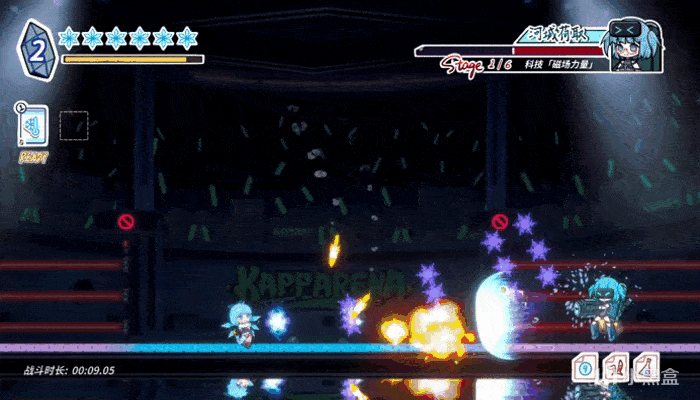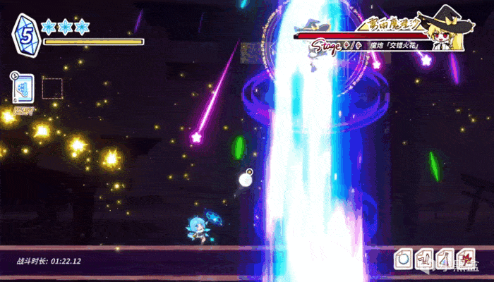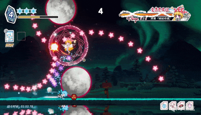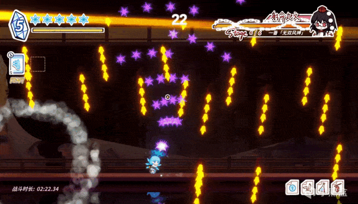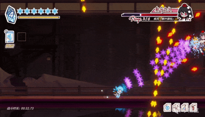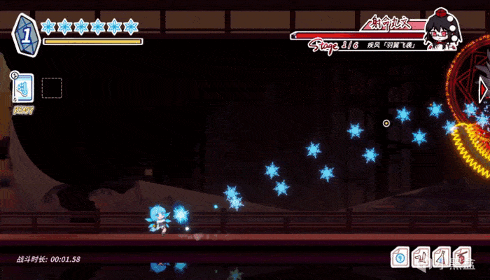 《東方冰之勇者記》的戰鬥,便是基於2D橫版的彈幕躲避/射擊遊戲。遊戲中單週目流程僅8個BOSS,誒,先別嫌少。