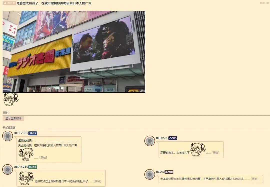 更離譜的是,育碧還在日本秋葉原大屏幕上投放“彌助斬首日本人”的廣告,雖然作爲國人,哥們對此是喜聞樂見的,但日本玩家可就直接炸了鍋了。