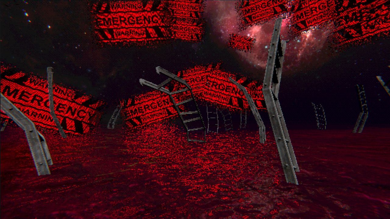 當然,如果只是像疊起積木大廈一般將不同物品拼湊成有些許精神污染意味的靜態雕塑尚且達不到令超現實主義在遊戲中大行其道的地步,在凌亂元素堆砌的基礎上,《緘默禍運》還在動態演出與心理暗示上下了一定的功夫——所有的所有都是爲了更加怪誕、更加迷幻,也更加虛無(對這類作品感興趣的朋友還可以瞭解一下《Sanguine Sanctum(血肉聖殿)》,一款重表現而不重敘事的超現實主義遊戲)。